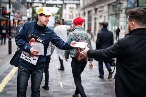 Time to Breathe is a UK-wide campaign calling for employers, policymakers and regulators to take seriously the risk of air pollution to the health of outdoor workers and is providing free information and resources to help reduce their exposure. With a high degree of political and regulatory inertia putting the health of outdoor workers at risk, the launch in Oxford Circus aimed to make a lasting impression and engage the public to put pressure on their MPs and employers to act.