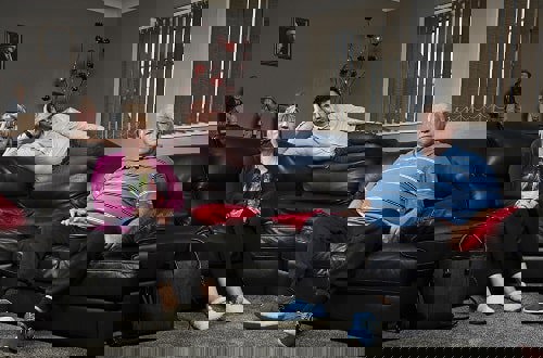 George Gilbey, centre, found fame on TV show Gogglebox. Photograph: C4 Gogglebox
