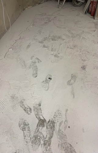 The workshop floor showing boot and shoe prints clearly visible in the dangerous dust. Photograph: HSE