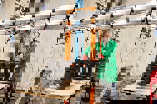 Testing on telescopic ladders is currently under way at a laboratory in Cambridgeshire. Photograph: Ladder Association