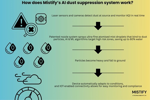 AI and machine learning algorithms will automatically adjust spray pattern and intensity in real time, targeting high risk zones where there is the most dust and avoiding quiet areas.