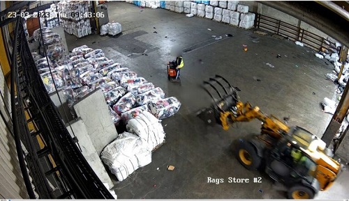 Stills from CCTV footage captured the scene moments before the 39-year-old man was struck. He had been using a ride-on electric pallet truck inside the factory building. The pallet trucks are used for transporting goods of clothing to sorting lines and other areas around the factory.