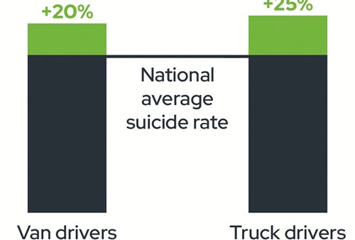 - Truck drivers have a 20 per cent higher suicide rate than the national average
